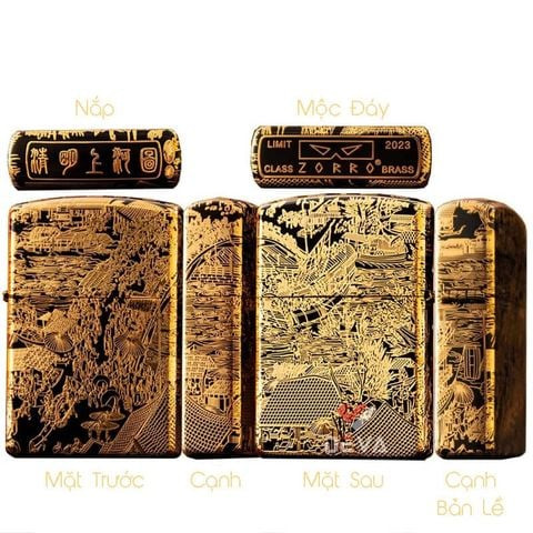 فندک بنزینی مارک زورو بدنه برنجی طرح در پران