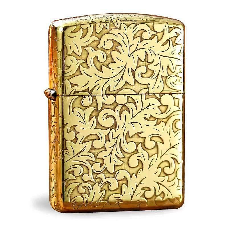 فندک بنزینی برنجی پلاک برجسته بر روی کل بدنه مارک زرو