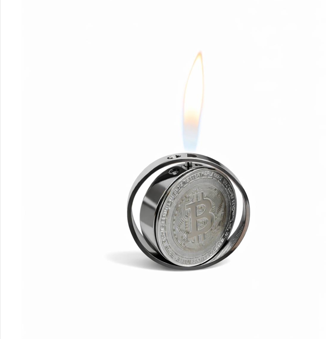 فندک گازی شعله معمولی مدل بیت کوین نقره ای