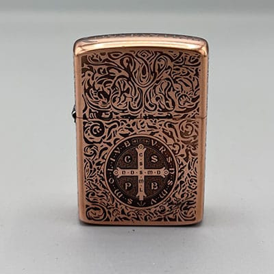 فندک بنزینی برنجی پلاک برجسته بر روی کل بدنه مارک زرو