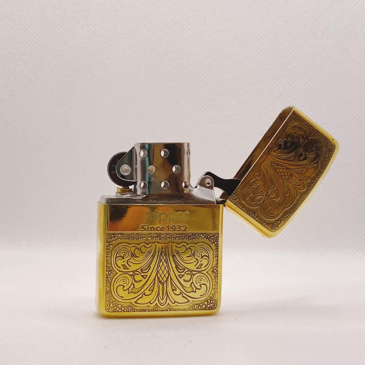 فندک بنزینی برنجی پلاک برجسته بر روی کل بدنه مارک زرو