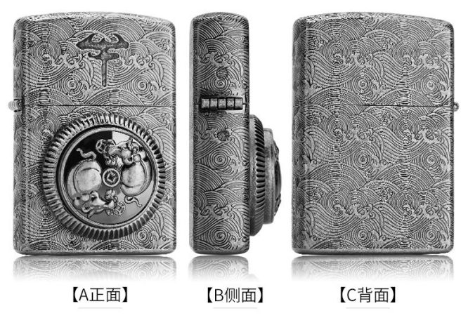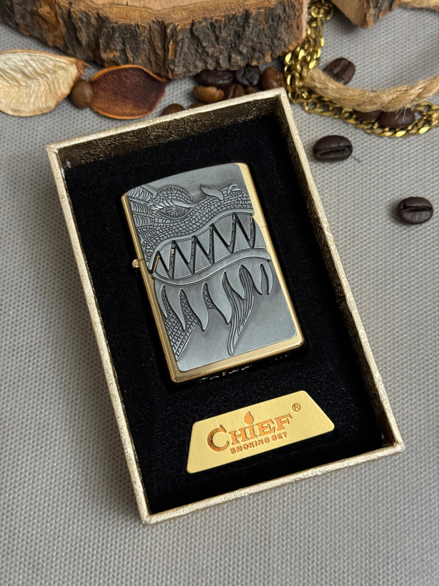 فندک بنزینی مارک چیف مدل دراگون و ماهی پلاک برجسته