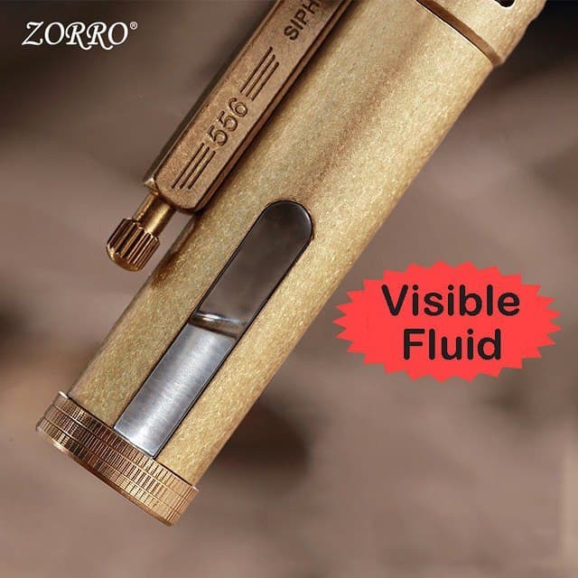 ناموجودفندک بنزینی مارک زورو مدل برنجی مخزن شفاف قلمی