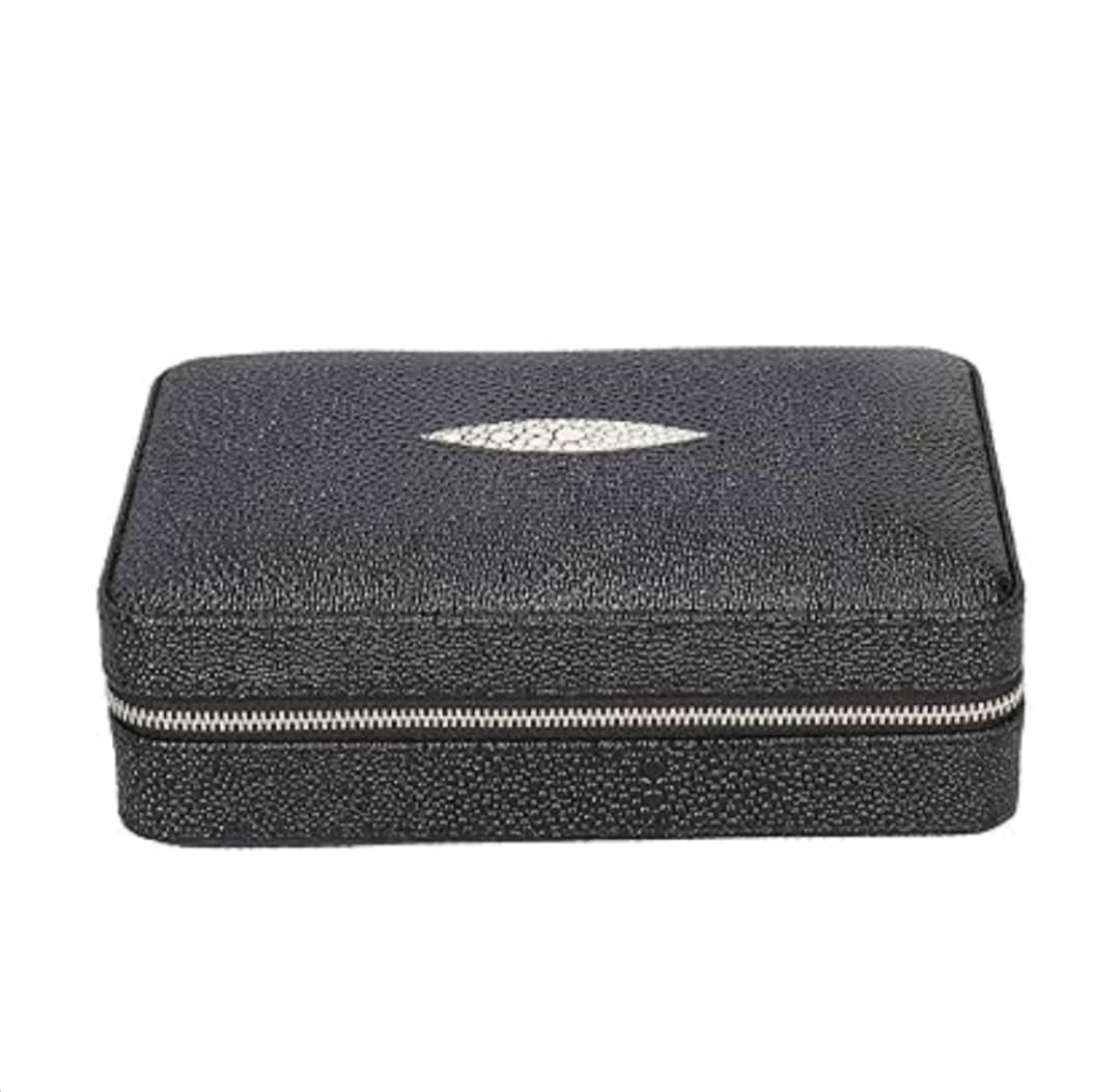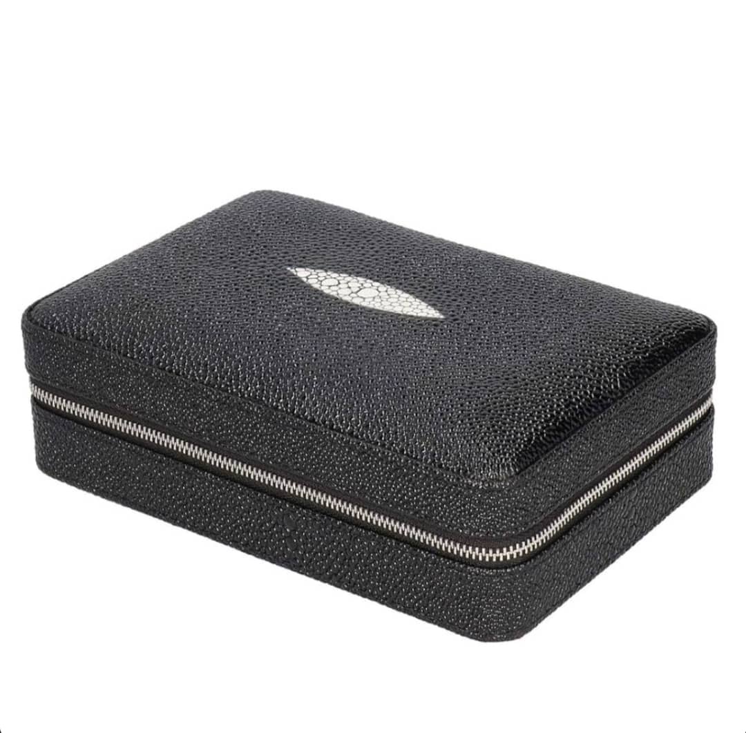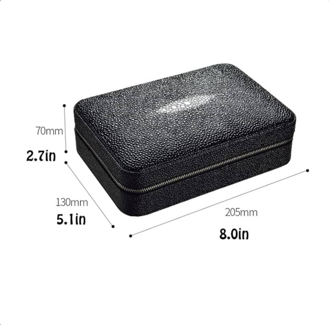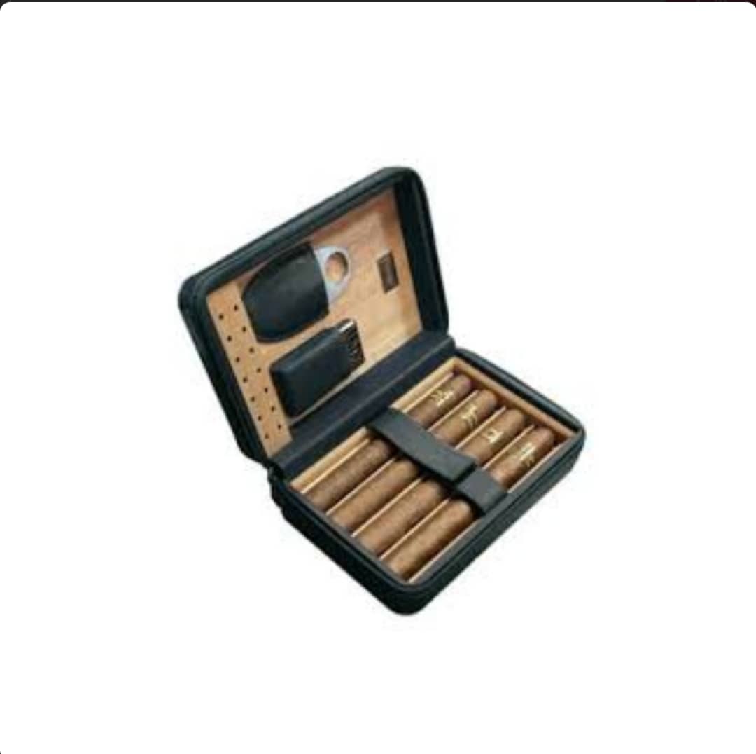 این محصول مارک سیکارلان میباشد که روکش چرمی طرح پوست ماری میباشد و داخلش هم ساخته شده از چوب سدر میباشد که سیگار برگ رو تازه نگه میدارد داخل ست یه کاتر استیل ساده ویک فندک کوره ای مخصوص سیگار برگ میباشد
