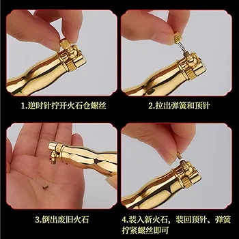 این محصول تماماً از برنج ساخته شده فر تا صد دست ساز میباشد و دارای قابلیت تعویض سنگ و فیتیله میباشد