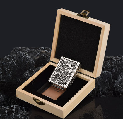 این محصول دارای جعبه چوبی و خود فندک به صورت پلاک برجسته بر روی تمام طرف بدنه طراحی شده است