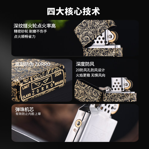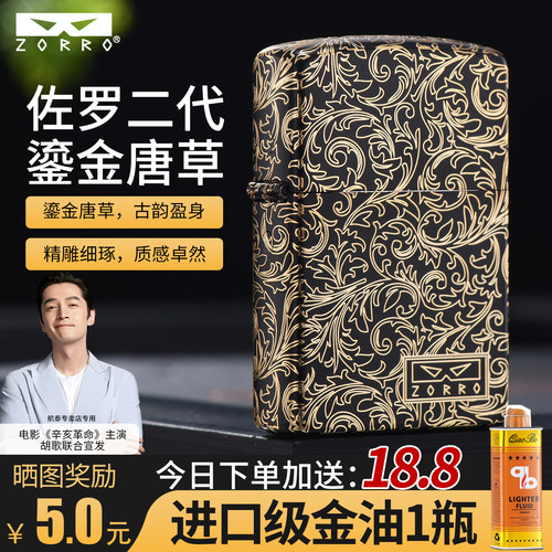 فندک بنزینی مارک زورو مدل بتوجقه طلایی مشکی