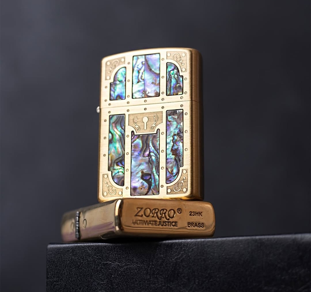 فندک بنزینی مارک زورو روکش صدف بدنه برنجی طرح در