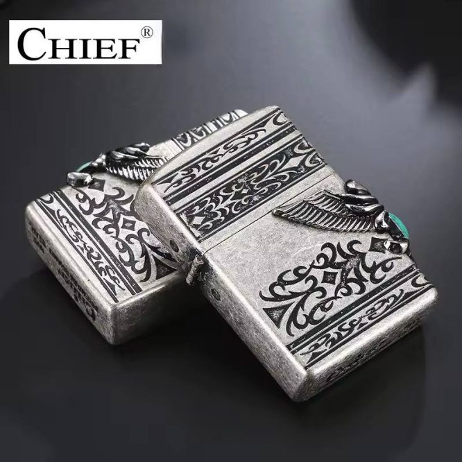 فندک بنزینی مارک چیف مدل آنتیک فیروزه