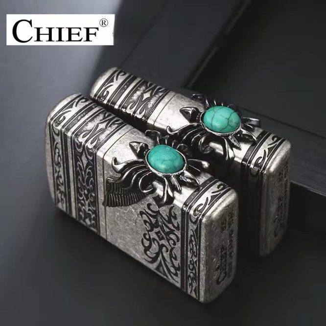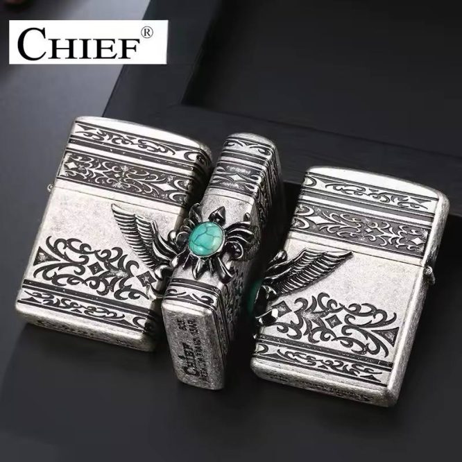 فندک بنزینی مارک چیف مدل آنتیک فیروزه