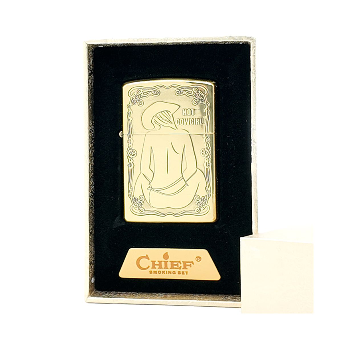 فندک بنزینی مارک چیف مدل مرد شکارچی بدنه برنجی