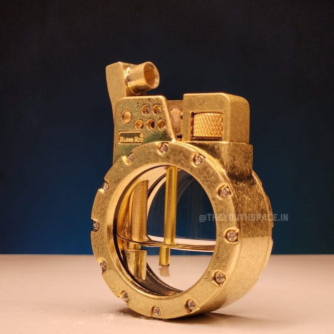 فندک بنزینی برنجی شیشه ای در پران دست ساز
