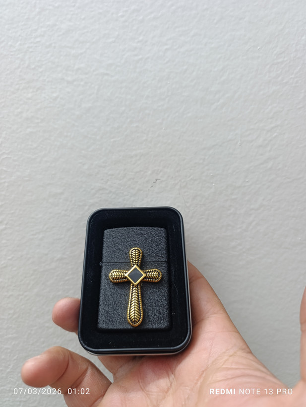فندک بنزینی مارک زورو طرح صلیب برجسته طلایی مشکی